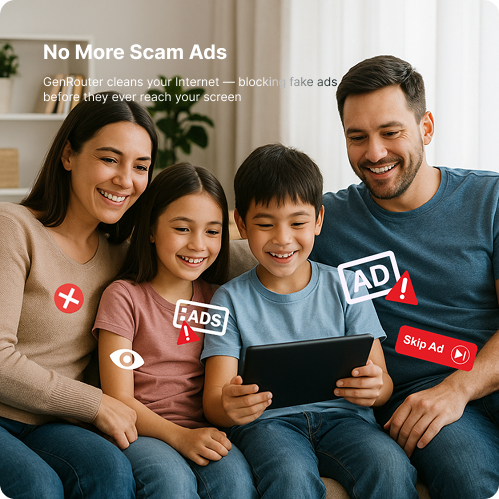 • GenRouter gives you a clean, ad-free exprerience across all devices for free